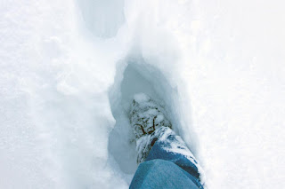 Nun sind wir also hier und auf unbestimmte Zeit erstmal festgenagelt. Die Seitenstraße ist eine einzige durchgezogene Eisdecke. Das Auto ist notdürftig an einem kleinen Hang abgestellt, ca. 10 meter vor dem Parkplatz, und mit Steinen an allen Reifen gesichert. Da geht gar nix mehr. Wir warten auf Tauwetter ...