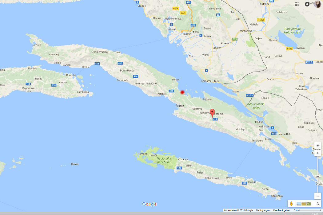 Apropos Auto: Man sieht ja so einige und natürlich auch die Kennzeichen. Und wir sind dann doch überrascht, dass so wenige D hier sind. Auch A ist auf den hinteren Rängen zu finden. Die Liste wird ganz klar von BiH, gefolgt von SL und PL angeführt. So ist auch die "Umgangssprache" in den Lokalen und Geschäften englisch. Im Gegensatz zu nördlichen, kroatischen Landesteilen, wo doch sehr oft deutsch gesprochen wird. Und während wir noch darüber sinnieren, sind wir schon in Nakovanj und erhaschen einen Blick auf Viganj und die gegenüberliegende Insel Korcula.