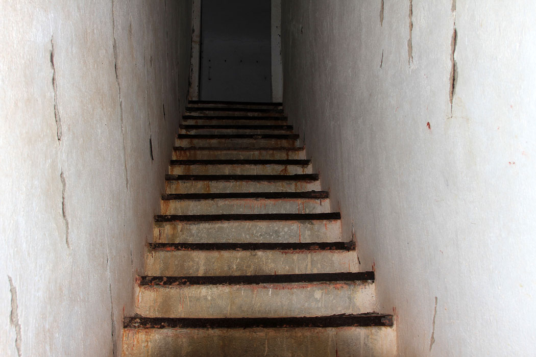 Der ganze Hügel ist unterbunkert. Und schon nach wenigen Stufen ist es dunkel da drin. Also Taschenlampe aus dem Auto holen und los gehts. Das "System" hat sozusagen vier Etagen, immer wieder Verzweigungen. Quasi ein kleines Labyrinth. Irgendwann fängt man an, nachzudenken: Wenn jetzt die Taschenlampe ausgeht ... Kurzum: Ich würde das nicht mehr machen. Jedenfalls nicht alleine und war froh als ein Luftzug kam = irgendwo muss ein Ausgang ein. Und tatsächlich stand ich dann unten in der Bucht Marinca. Weil ich aber vor lauter Hektik keinen Pfad nach oben gesehen habe, ging es den Weg durch das System wieder zurück. Erstes Foto zeigt den Eingang: